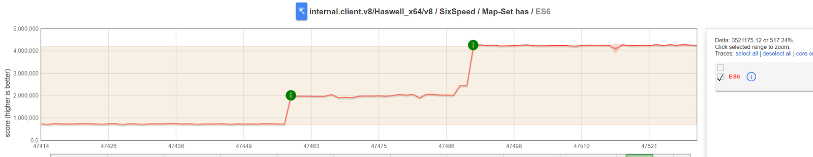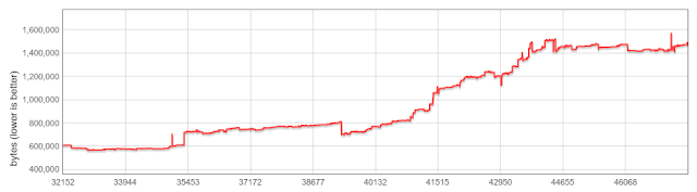 2016-01에서 2017-09까지의 시작 스냅 샷 크기 (바이트). X 축은 V8 개정 번호를 표시합니다. |